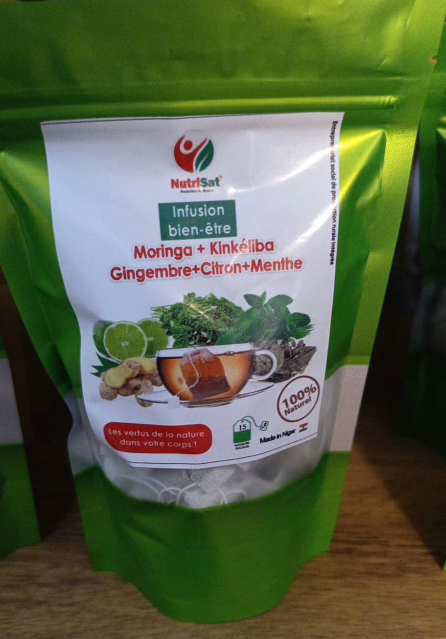 Composer de : -Moringa -Kinkéliba -Gimgembre -Citron -Menthe